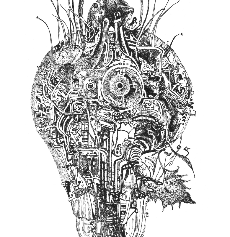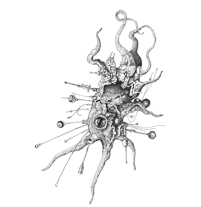Primarily working with the medium of drawing, Stahel has developed a complex, intricate, and pseudoscientific visual language.